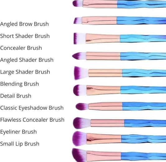 10pc 3D Unicorn Diamond Make Up Brushes