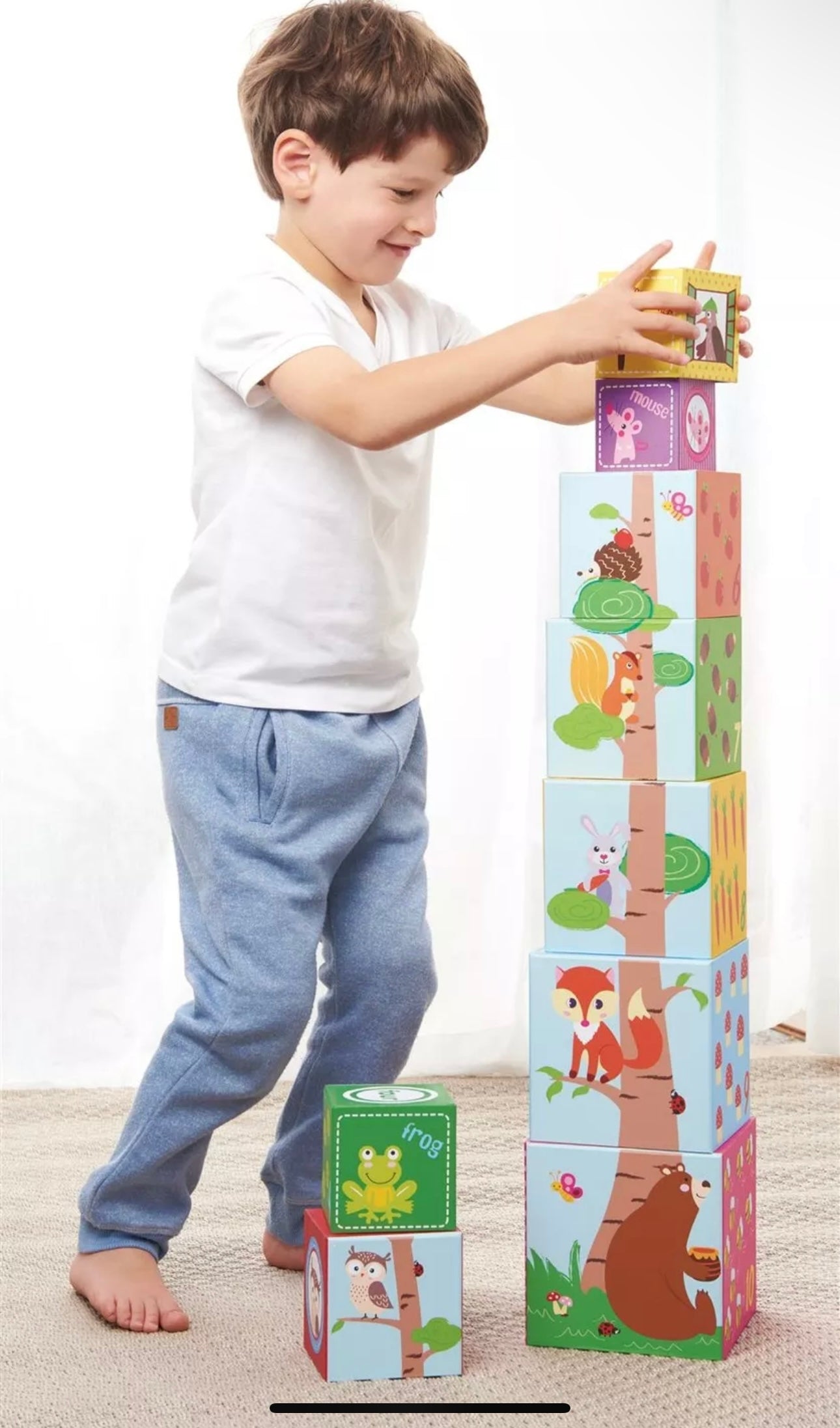 COLOURFUL DESIGN: Lelin Forest Stacking Cube is handmade using bright and colourful cardboard which makes a very attractive design for kids.