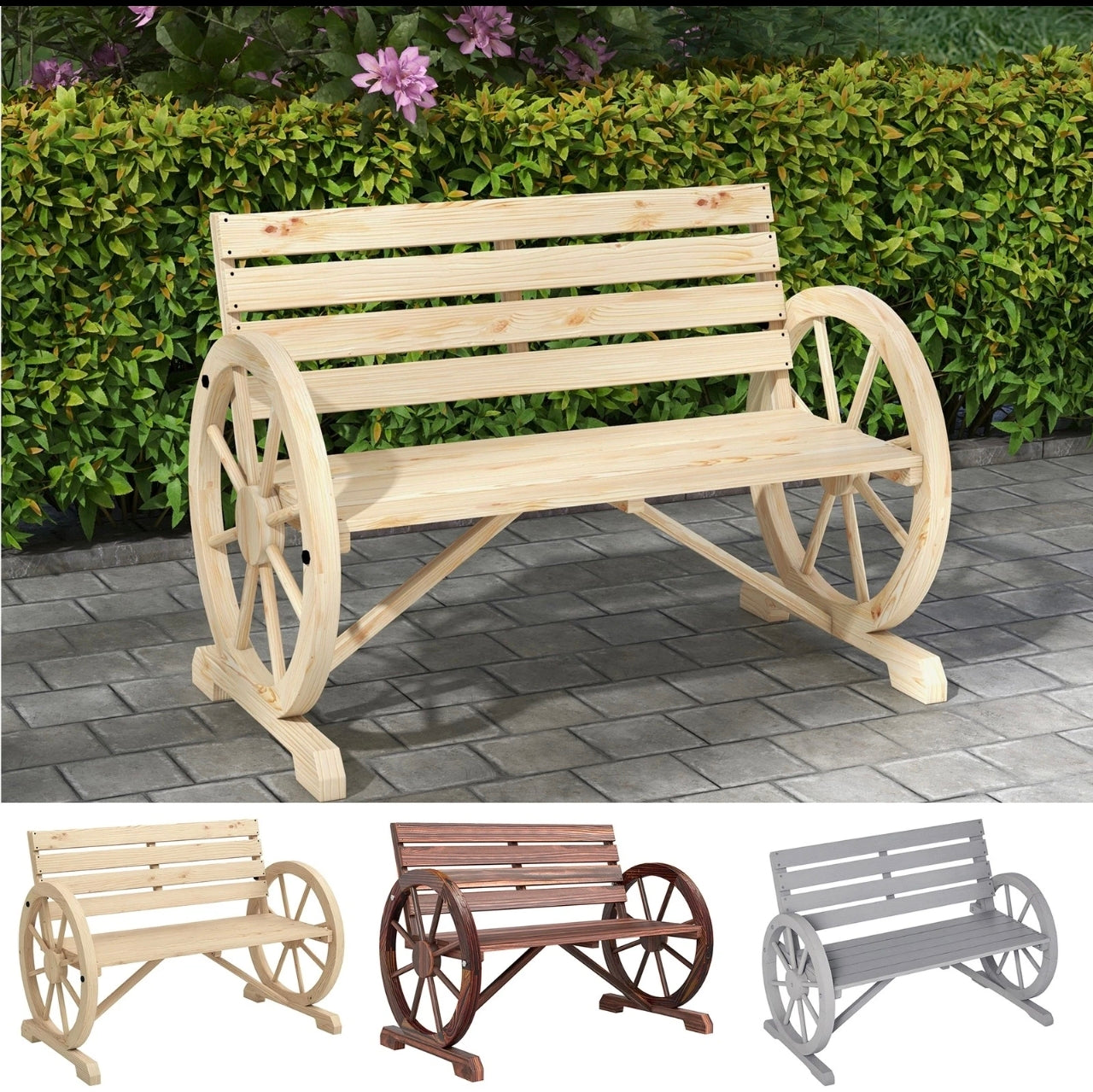 2 Seater Wagon Wheel Garden Bench