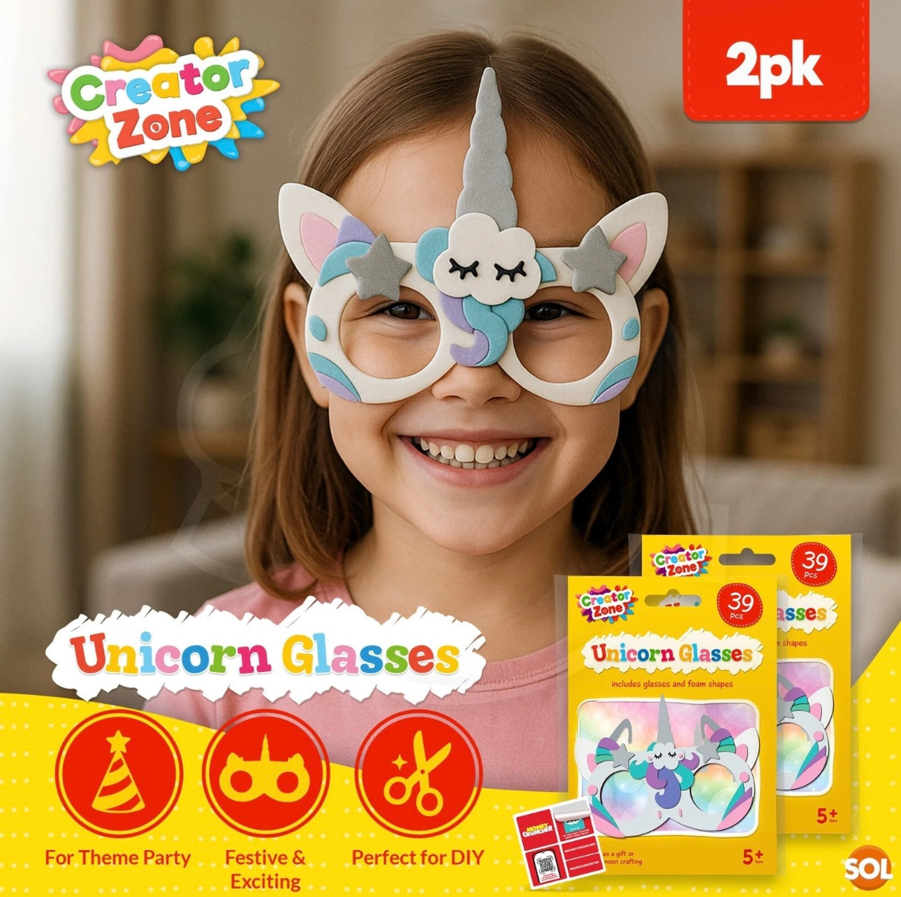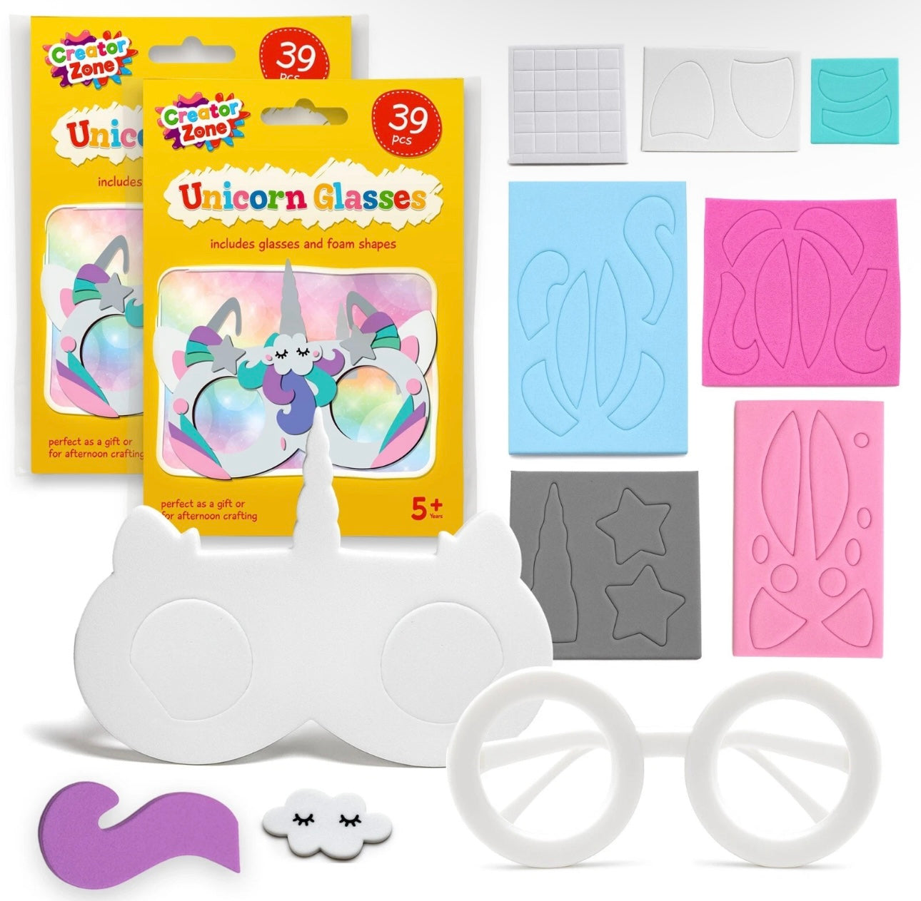 Unleash creativity and let imagination shine with the Creator Zone 2pk Make Your Own Unicorn Sunglasses 39pcs Set – a playful blend of art, fashion and personal expression. Each set includes 39pcs per pack, designed to let young creators build their own unique pair of unicorn sunglasses.
