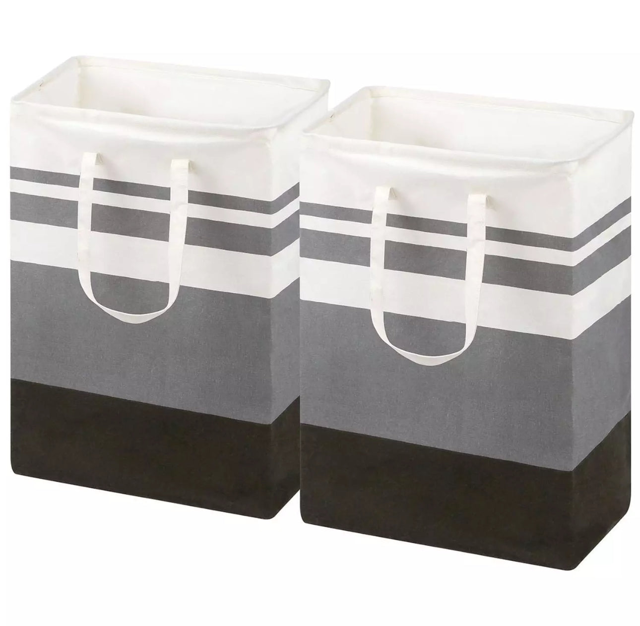 Each laundry basket in this 2 pack set provides a generous 75L capacity, allowing you to easily sort and store multiple loads of laundry. Bid farewell to overflowing hampers and embrace a more efficient laundry routine. Measures H60xW40xD30cm