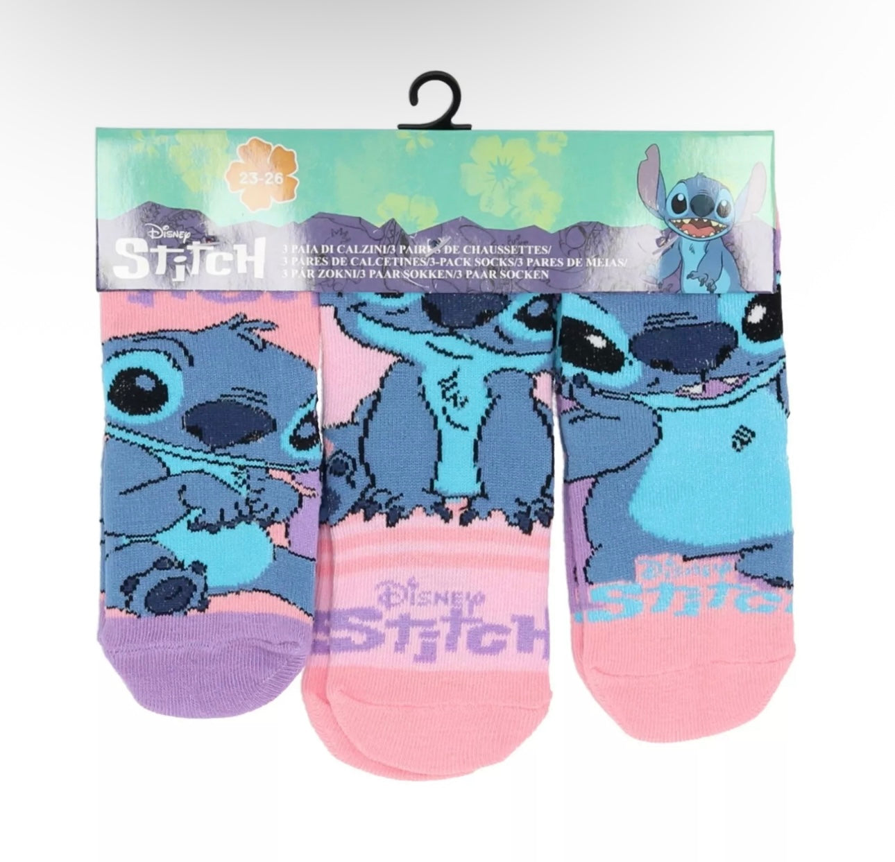 Add some fun to your little girl's wardrobe with these Stitch Socks. This 3 pack set features ankle socks with various designs featuring Disney characters. The socks are made of high-quality cotton material, ensuring comfort and durability. They come in three sizes to fit girls of all ages. These socks are perfect for casual occasions and can be worn in all seasons. The novelty pattern and Stitch theme make them a great addition to any outfit.