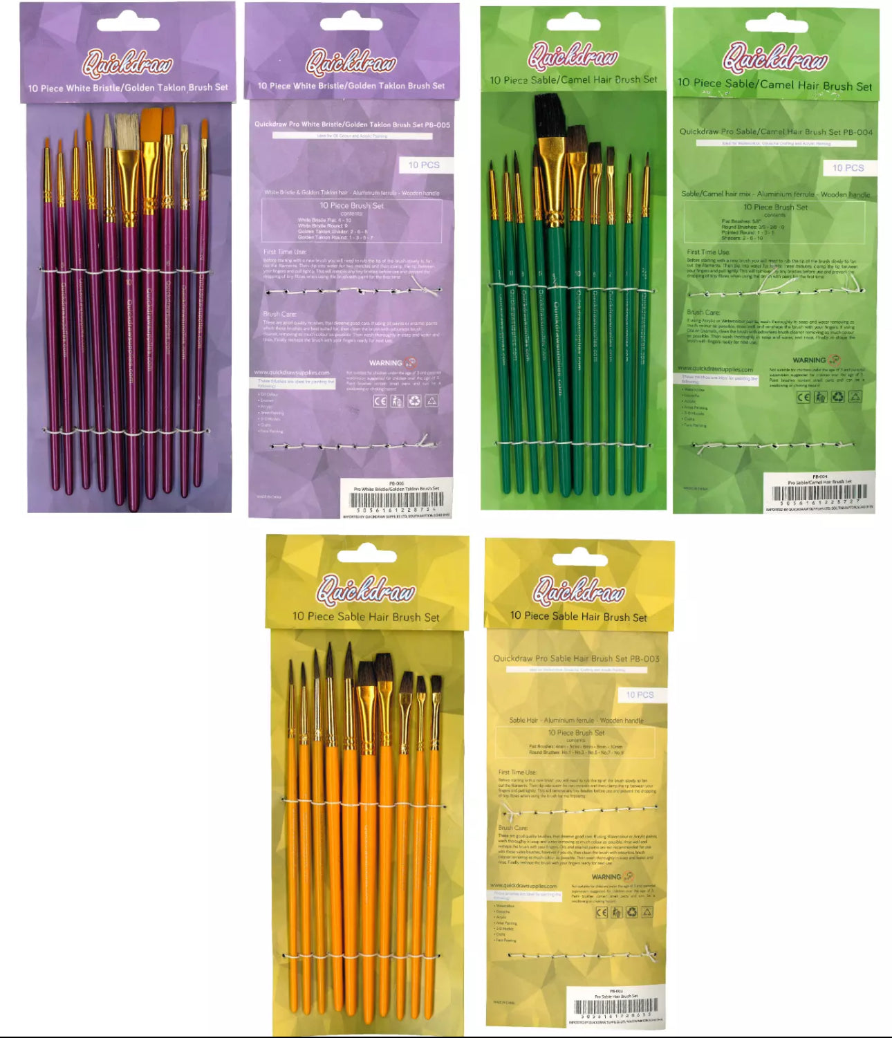 Each set contains a selection of sizes and brush shapes which are ideal for artists, crafters, students and schools.