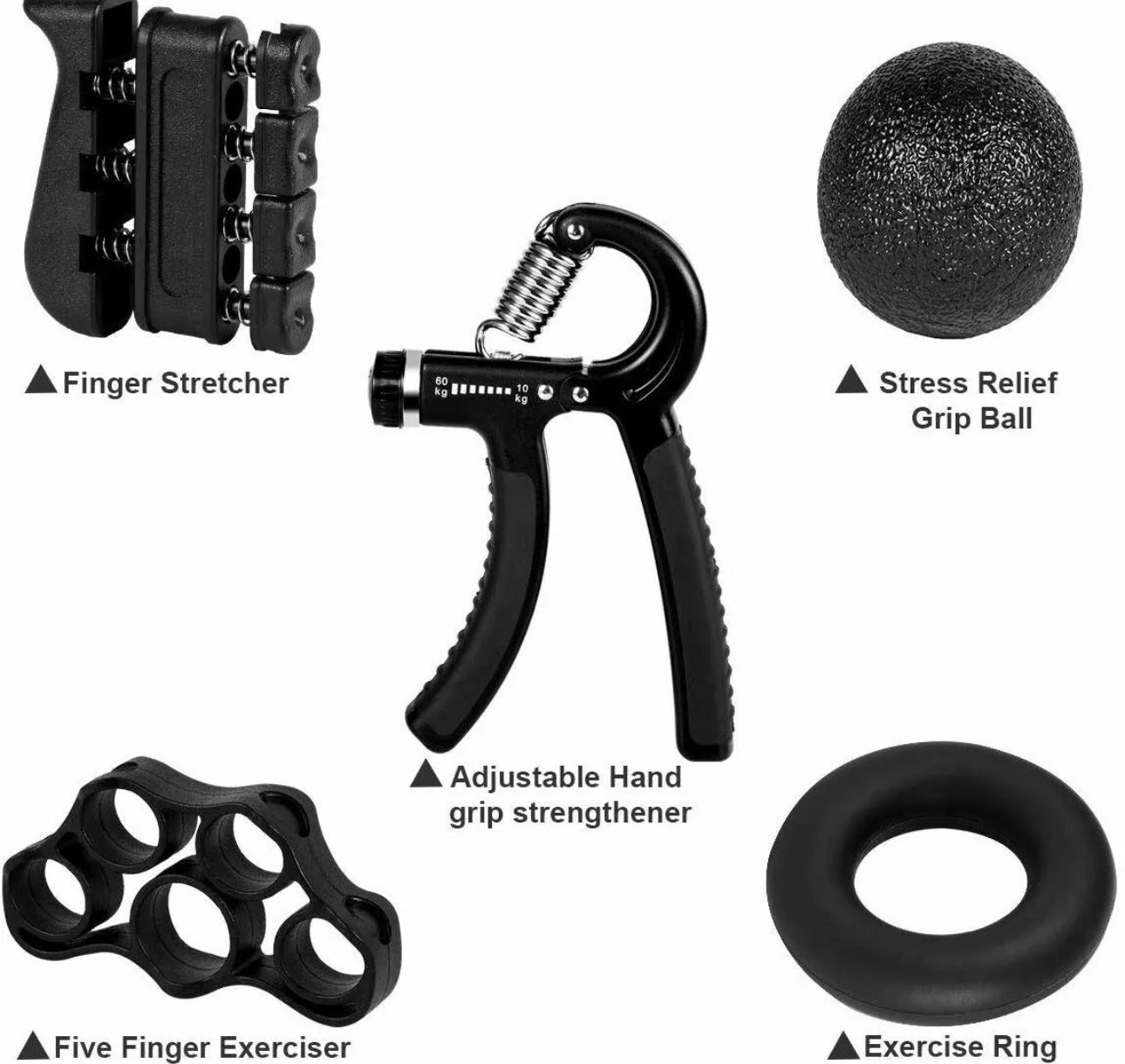5PC Hand Grip Strengthener Set Wrist Finger Forearm Exercise Resistance Grip Ball