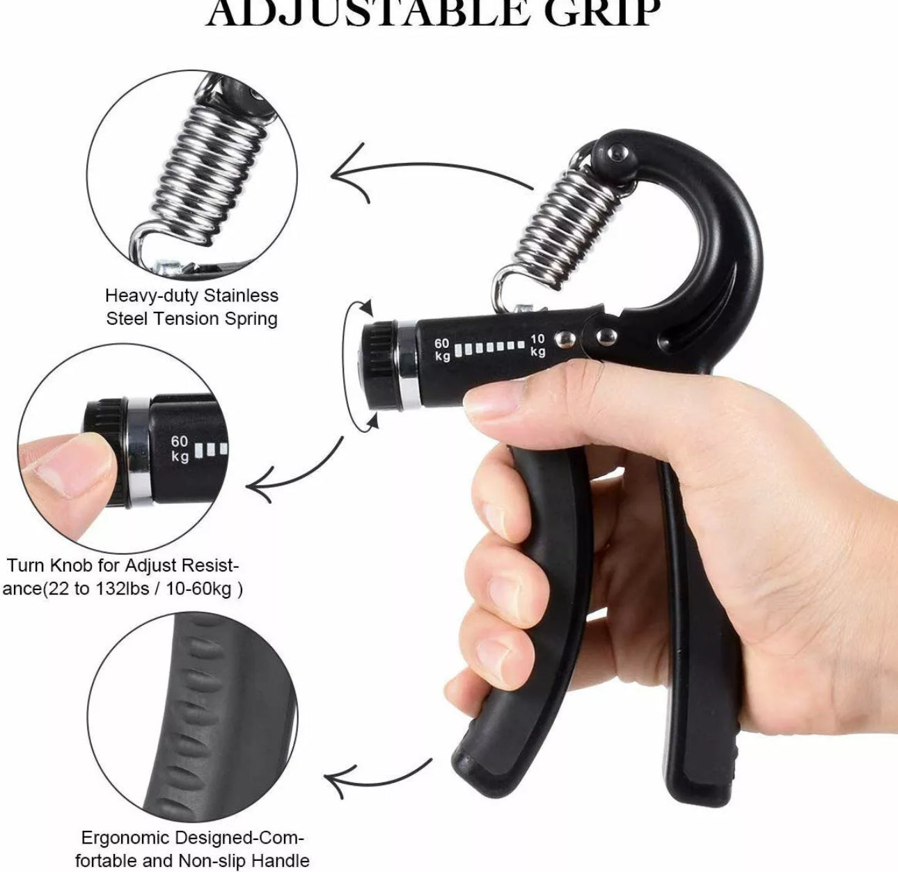 ● Adjustable Hand Grip Strengthener (22-132Lbs).