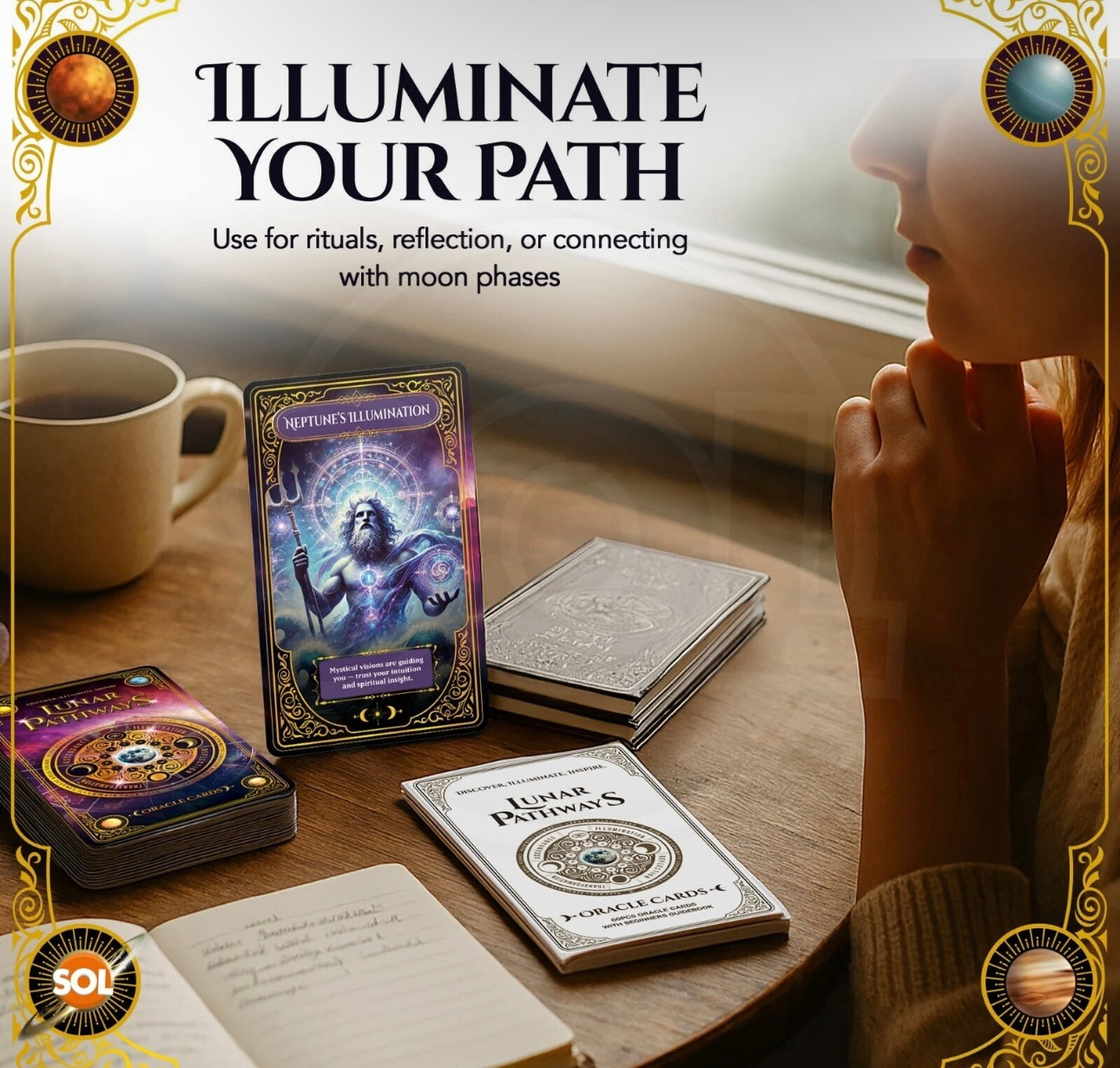 - Illuminate Your Path with Lunar Energy: Each card reflects a phase of the moon to help you unveil your journey, align with the cosmos, and tune into your intuition.