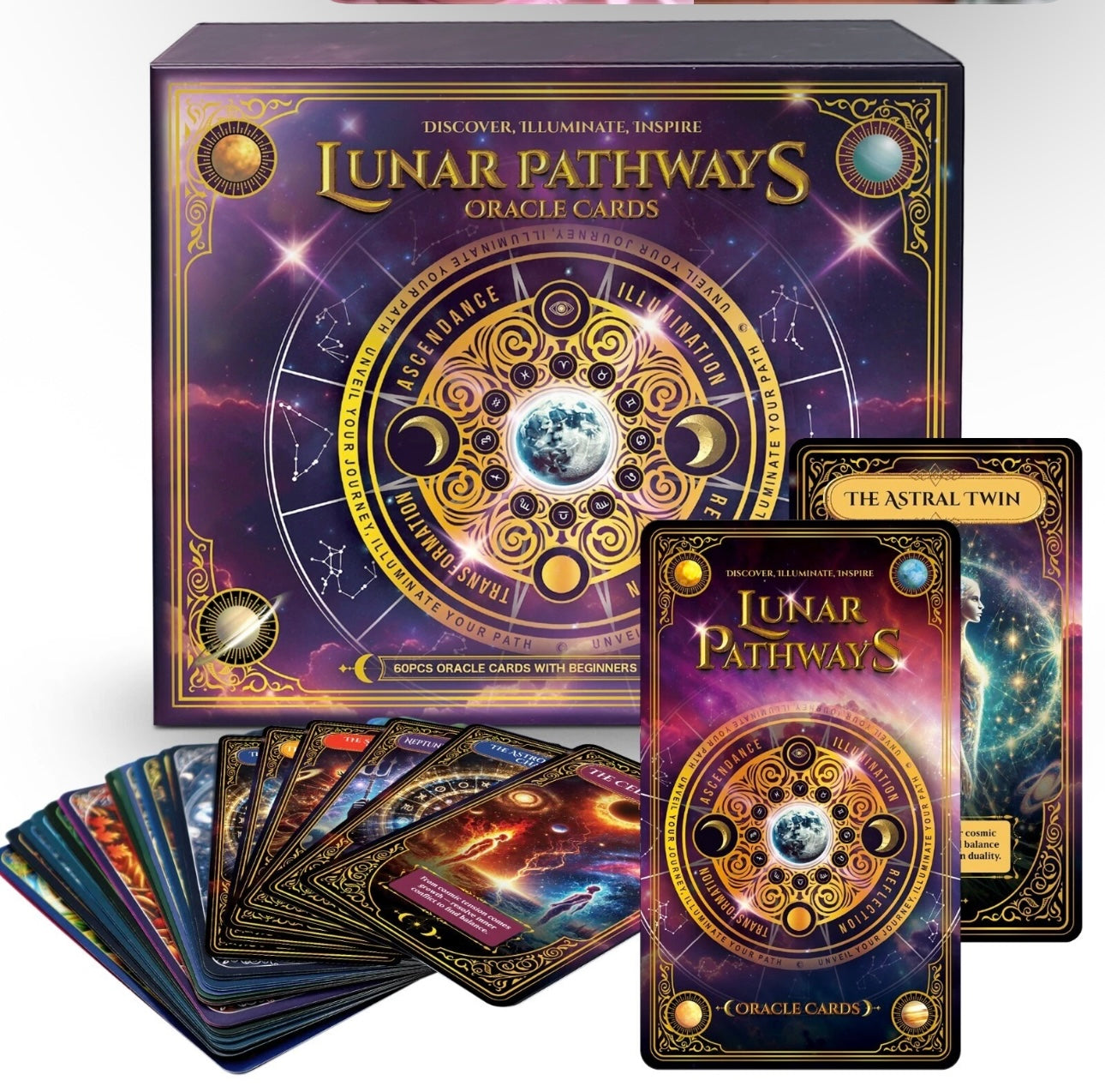 60pc Lunar Pathways Oracle Cards For Beginners