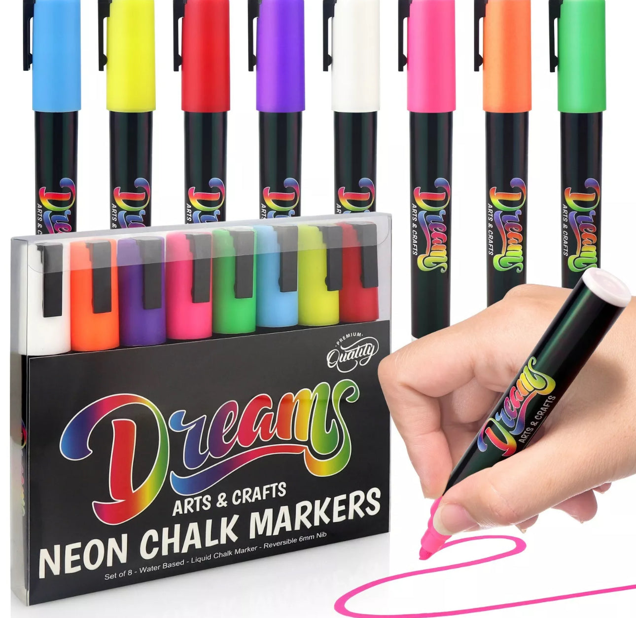 On top of that, the colours in the Dreams Chalk Marker Pen Set aren’t just for blackboards. They work on any non-porous surface, everything from metal and glass to whiteboards and glass suddenly become a blank canvas!