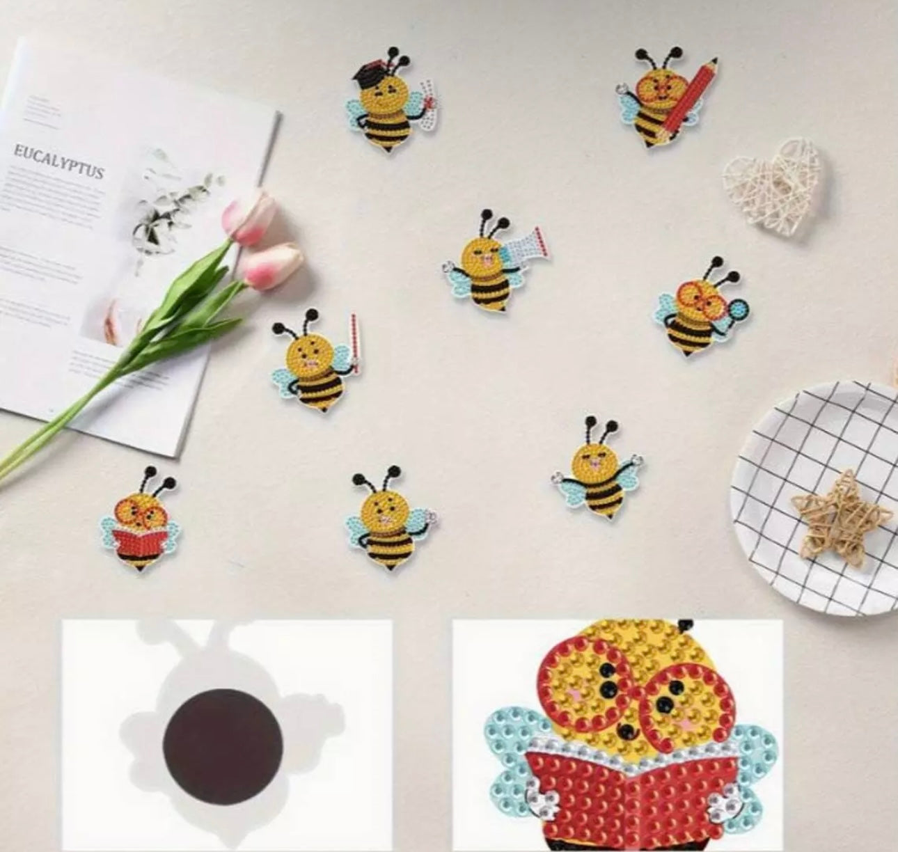 8pcs 5D Diamond Art Assorted Learning Bee Magnets DIY Diamond Magnet Kit for Beginners Arts and Crafts