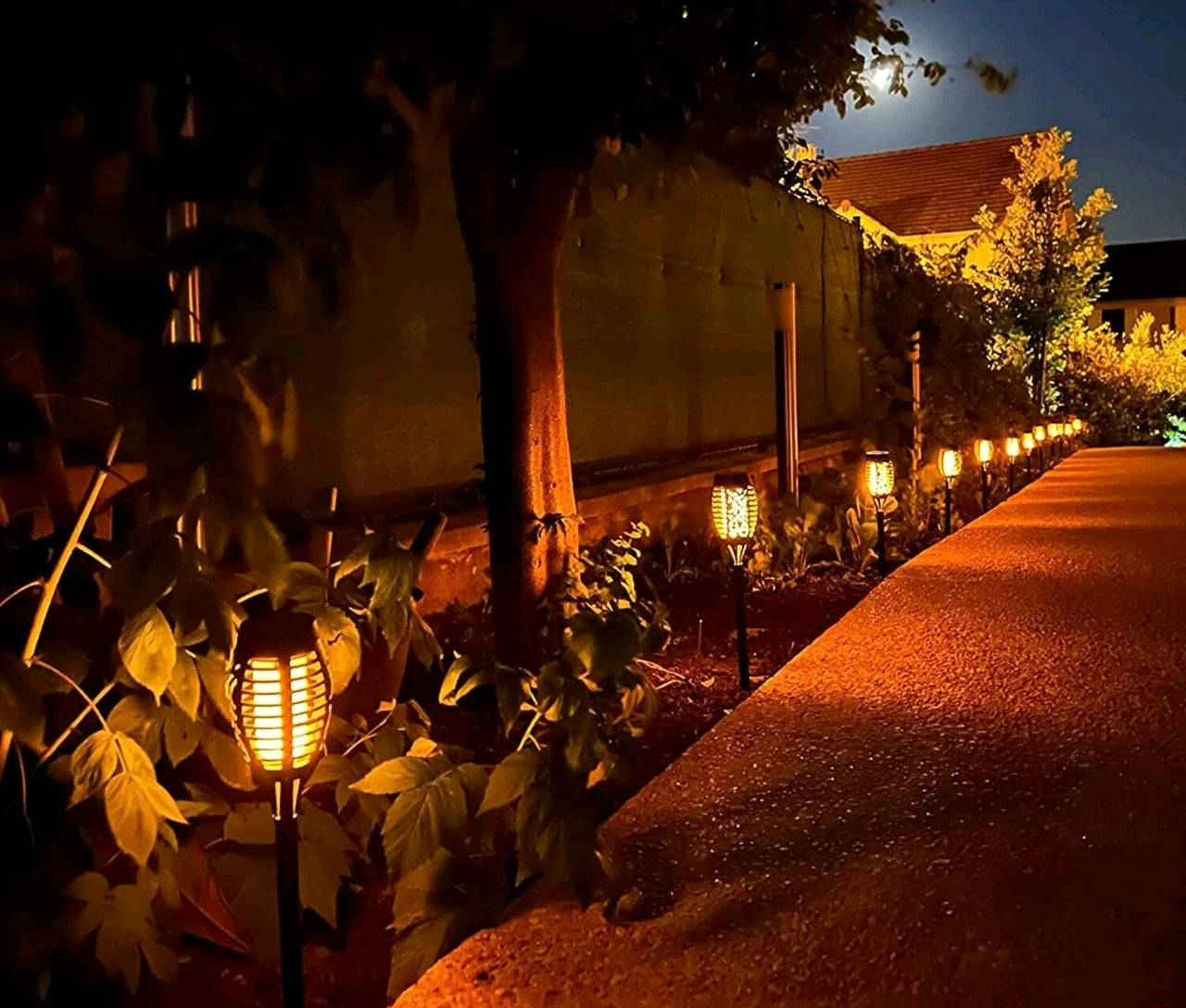 Garden Lighting with Flickering Flame Design: This high-brightness 12-LED outdoor solar light brings you a realistic flickering flame effect, a safe alternative to a real "flame." Create a warm, gorgeous, and romantic campfire atmosphere, adding a decorative highlight to your home and garden. They are an excellent choice for outdoor fence decoration and patio lighting.