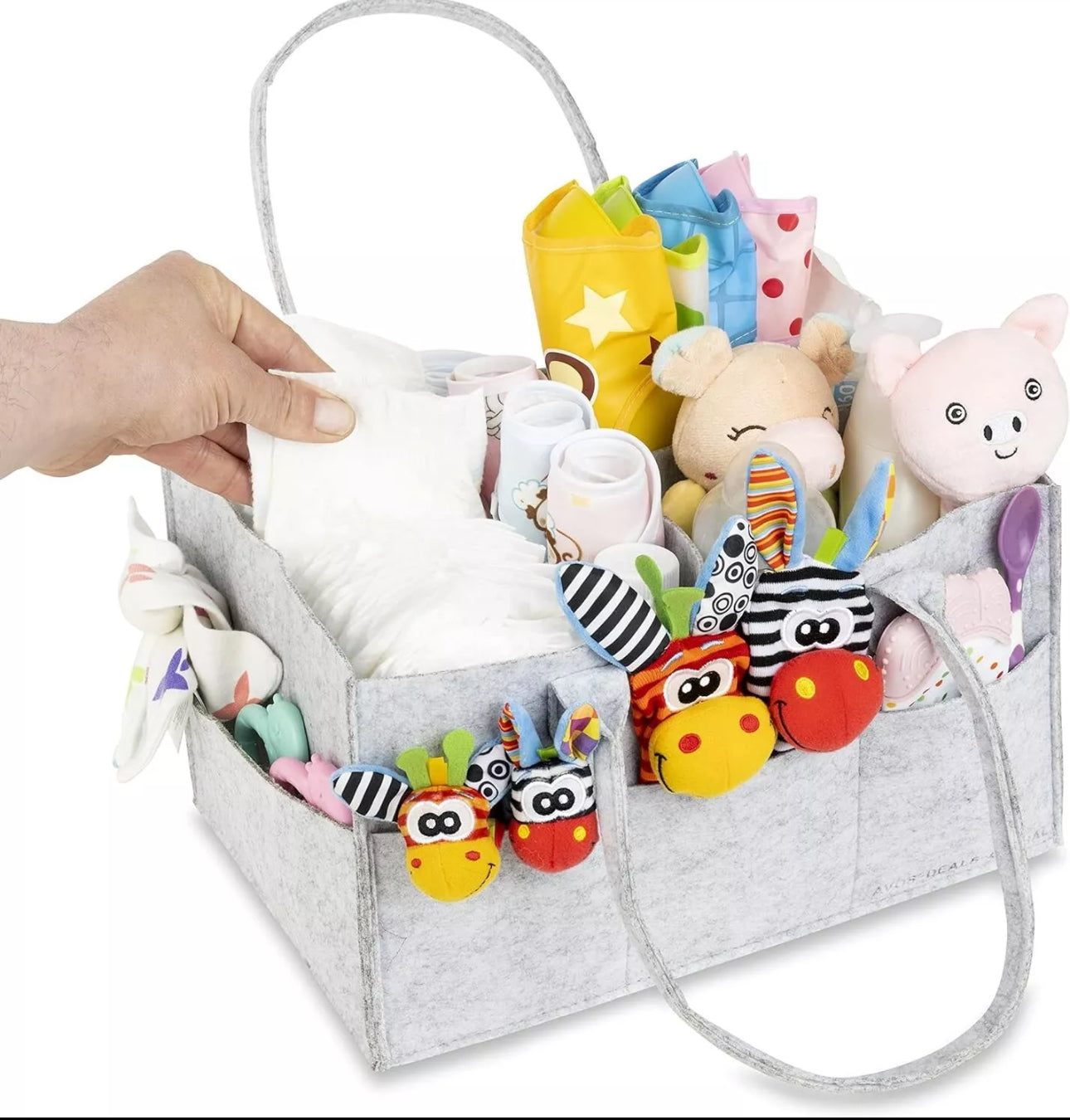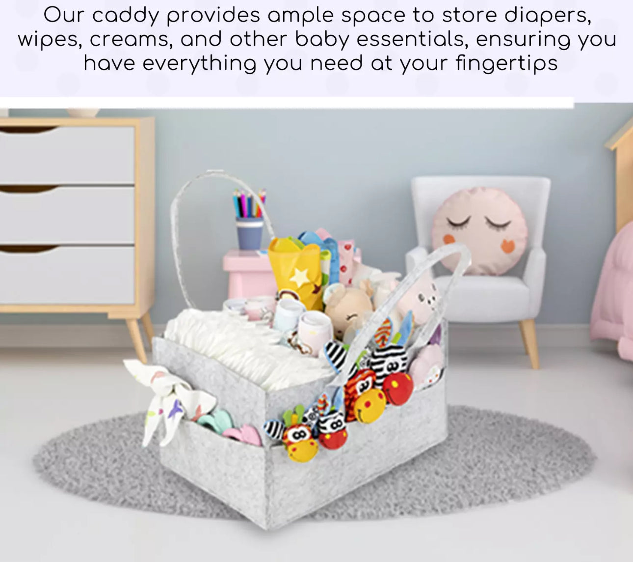Generous Size:Measuring 33cm x 22cm x 17cm, our caddy provides ample space to store diapers, wipes, creams, and other baby essentials, ensuring you have everything you need at your fingertips