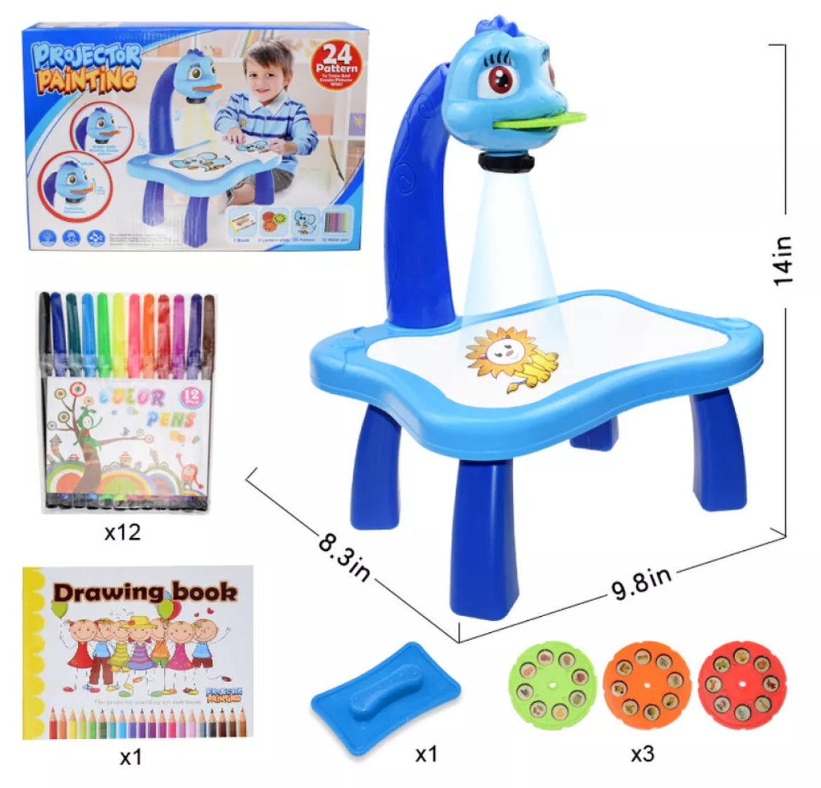 - Notice: Comes with 1 x projector table, 1 x drawing book, 12 x markers, 1 x eraser, 3 x stencils.
