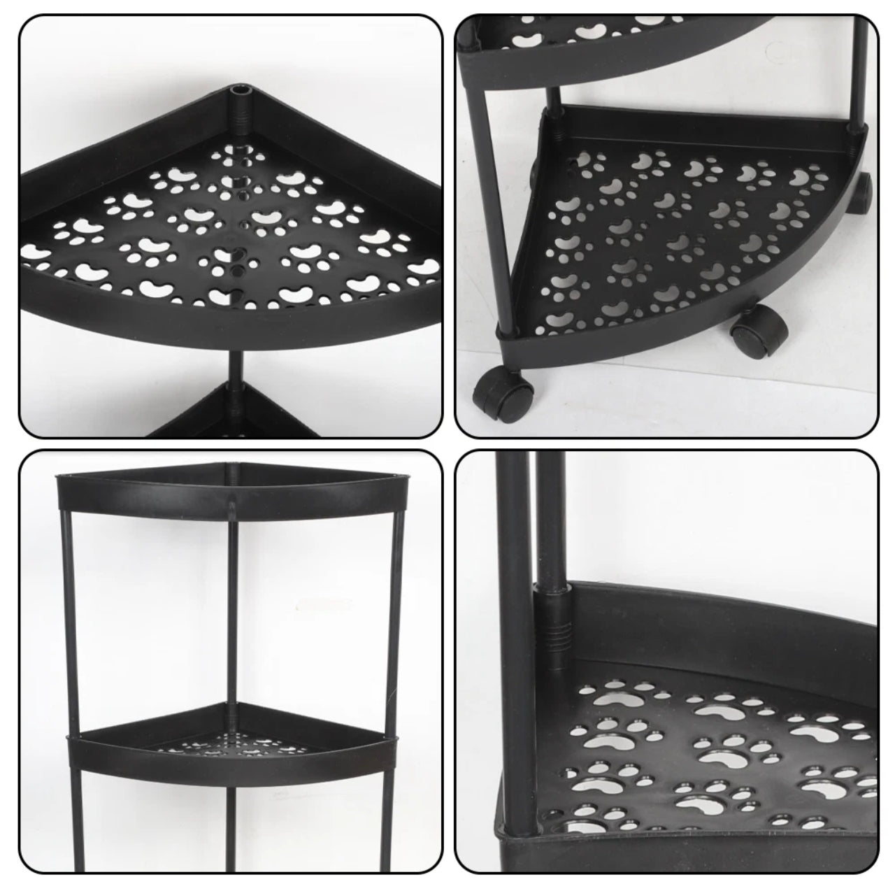 Our Latest 3/4 tier Caddy Corner Shelf Bathroom/Kitchen Storage Shelves are made of strong & sturdy plastic which is specifically designed to hold all of your shower and bath essentials, including shampoo, conditioner, razors, washcloths, soap, etc