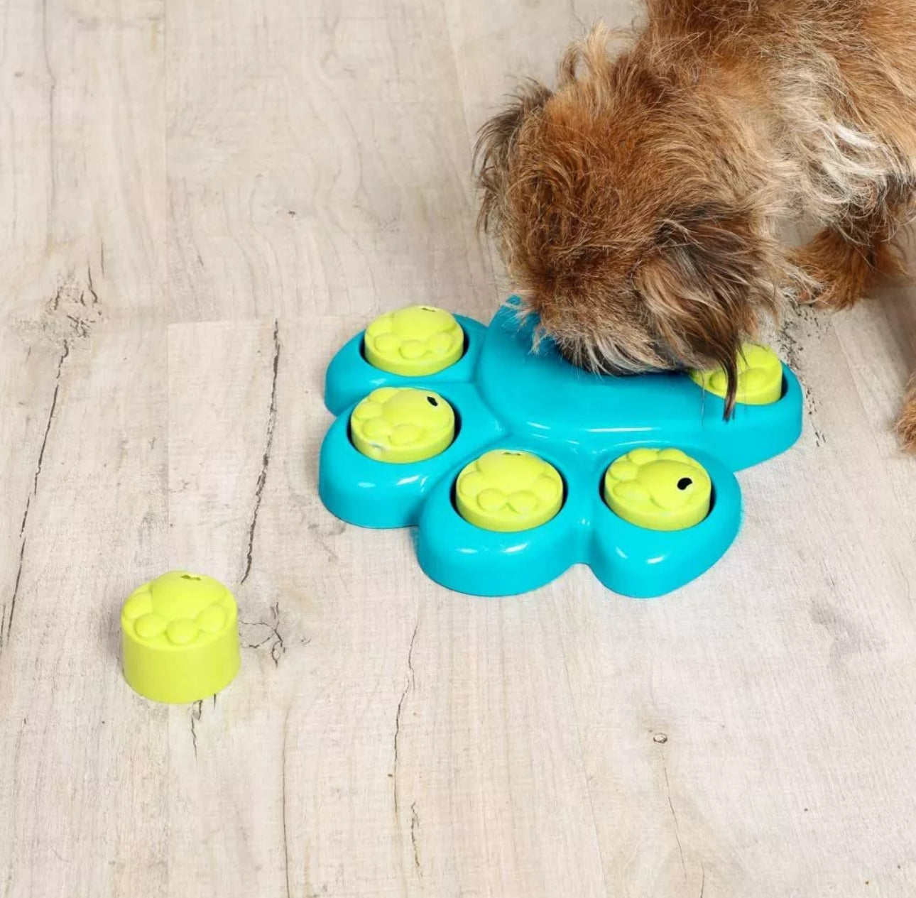 Comprising seven independent chambers in bright eye-catching colours to hide your tasty treats, the toy features anti-slip pads to prevent it skidding across the floor when your dog begins their treasure hunt. The Paw Hide is perfect for beginners - use your pet's favourite, smelliest treat to get them excited to play and learn! Can also be used during meal time to help engage dogs or slow down eating.
