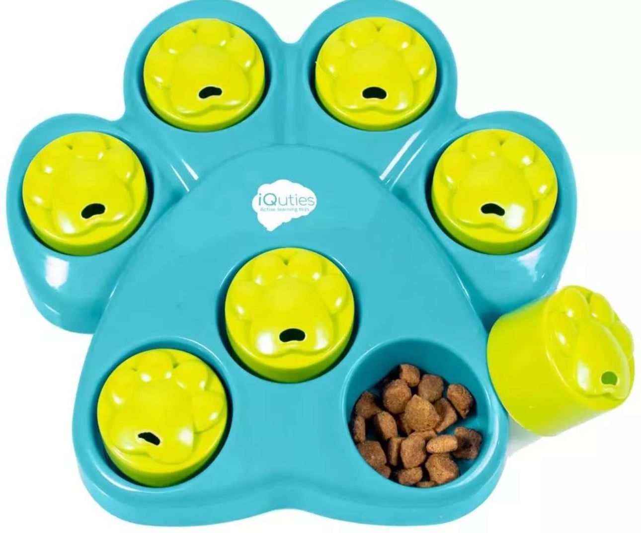 Quties Active Training toys provide fun physical and mental stimulation for your pet. Their use exercises your dog's mind - reducing boredom and teaching problem solving skills. They can also help to redirect potentially destructive behaviour into a positive outlet. With the iQuties Active Training Paw Hide, your super smart pooch will learn how to remove the cover cups to reveal the treats inside!
