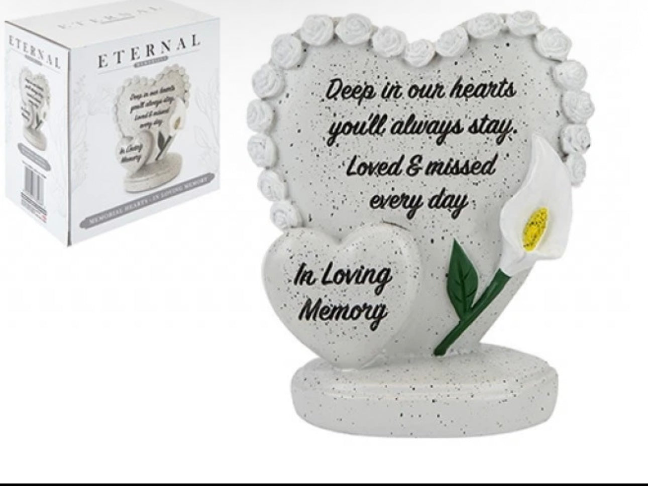 Each heart is sat on a base so stands up freely, made from tough durable polyresin