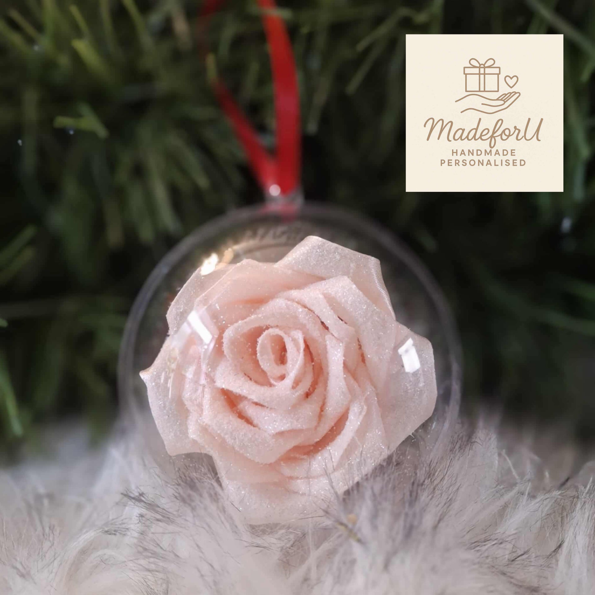 These beautiful roses in a bauble are perfect for a unique Christmas Tree Decoration or gifted to a loved one as a keepsake.