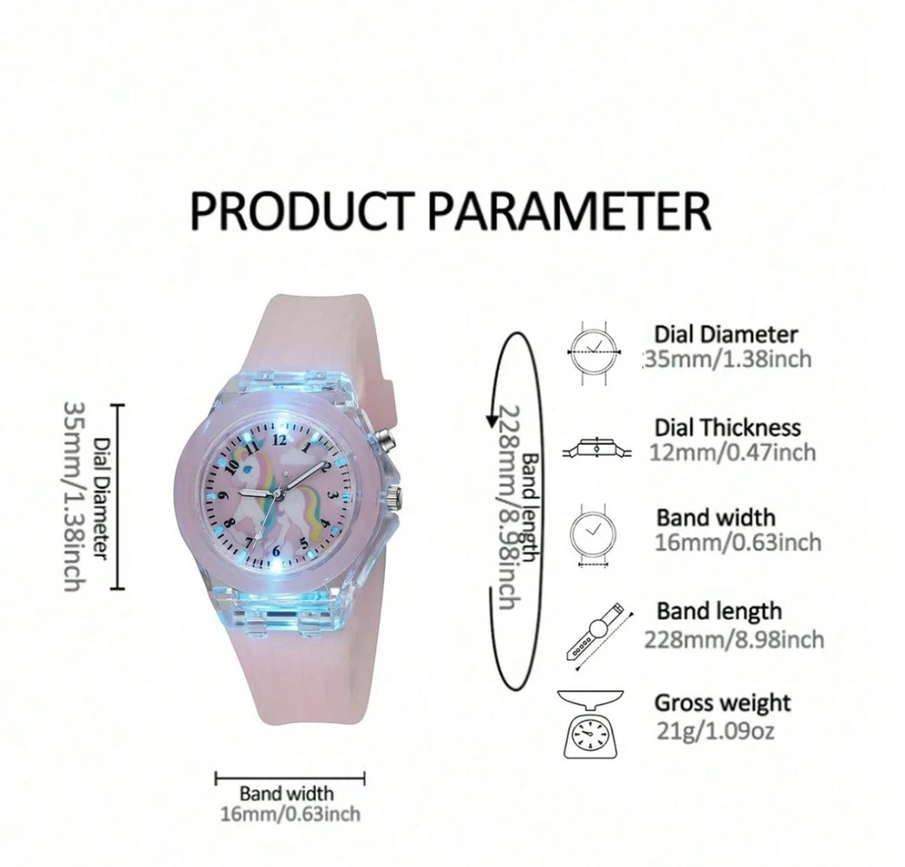- LED Light-Up Function: The watch lights up with vibrant colors for an extra magical effect.