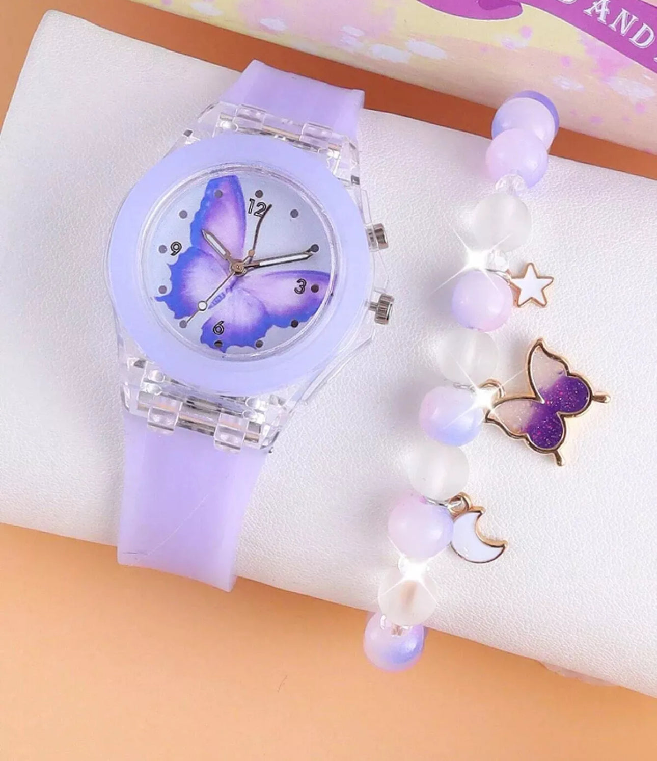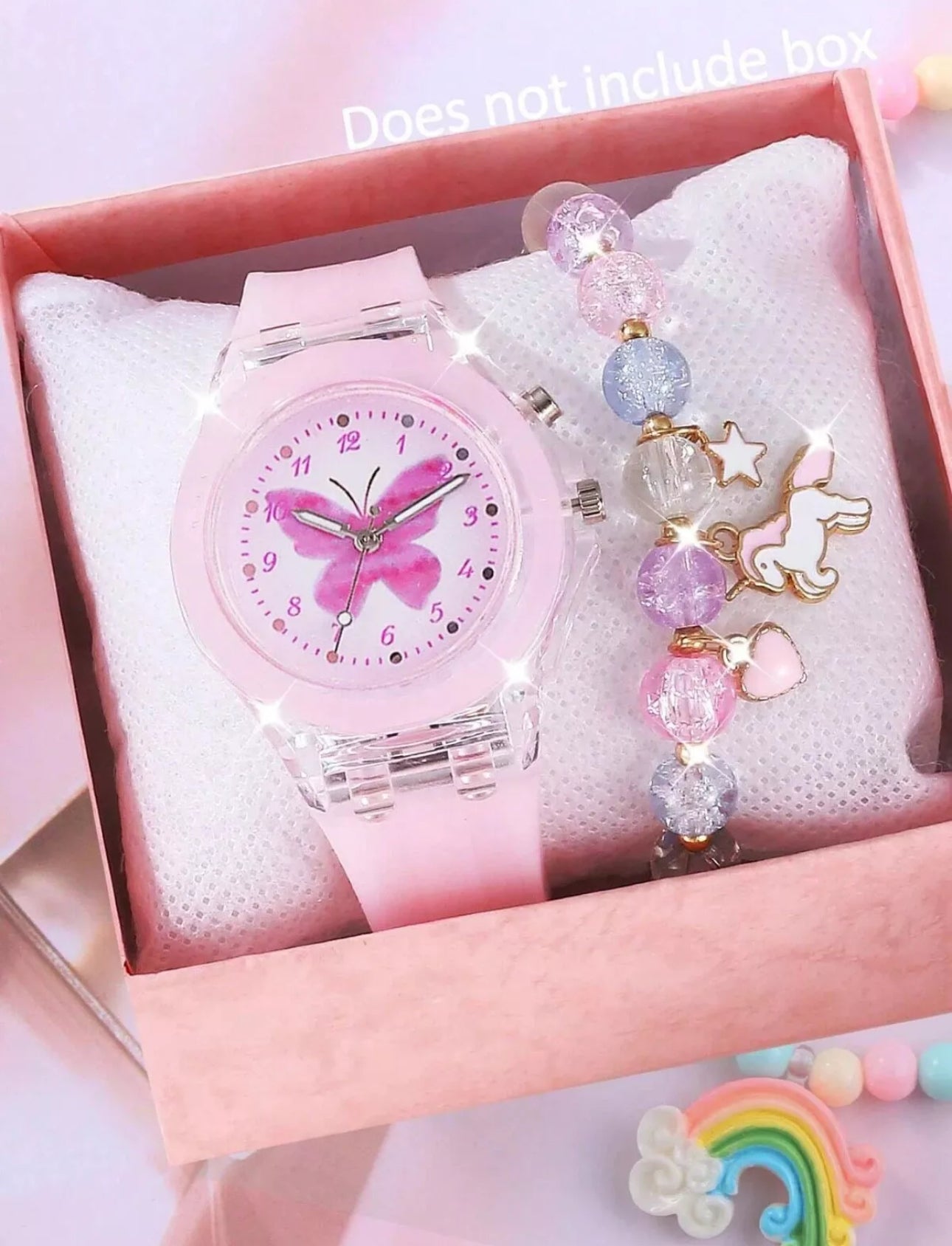 Girls 2pc Light Up Wrist Watch & Bracelet Gift Set