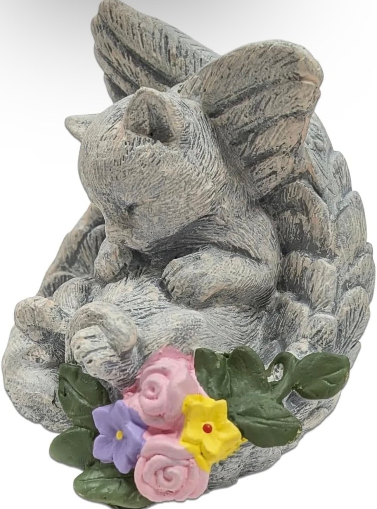 Brightly hand-painted flowers in pastel pink, yellow, and purple provide a gentle pop of colour, representing life, love, and remembrance. Whether purchased for personal comfort or as a sympathy gift for a grieving friend or family member, this figurine serves as a lasting tribute to a much-loved pet.