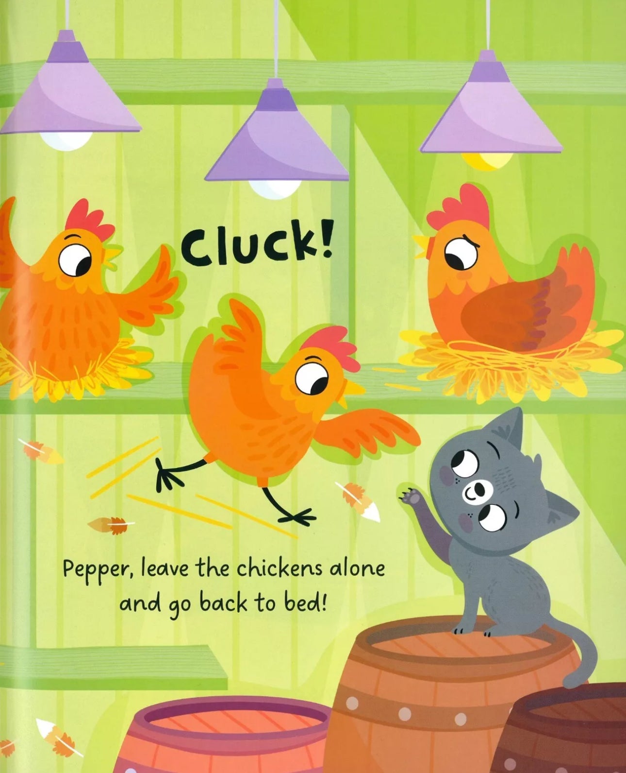 'Mummy cat is trying to get her kittens to settle down for a nap. One by one, they keep disappearing and causing commotion in the barn...'