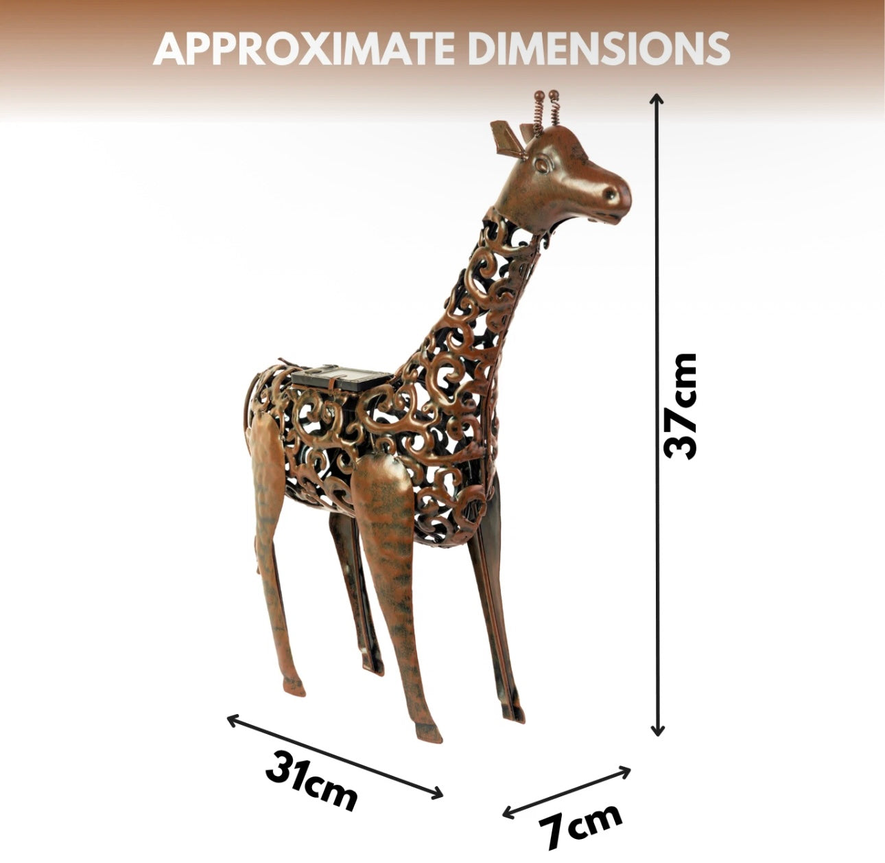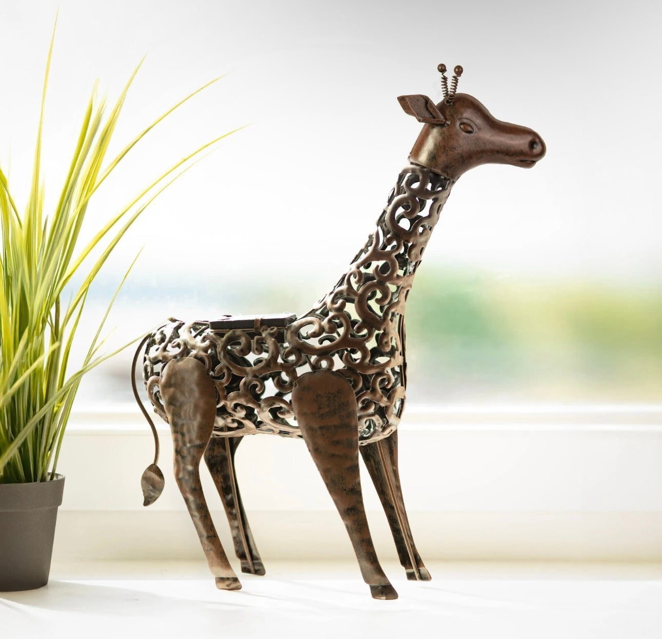A bronze effect Giraffe that has Warm White LED's.