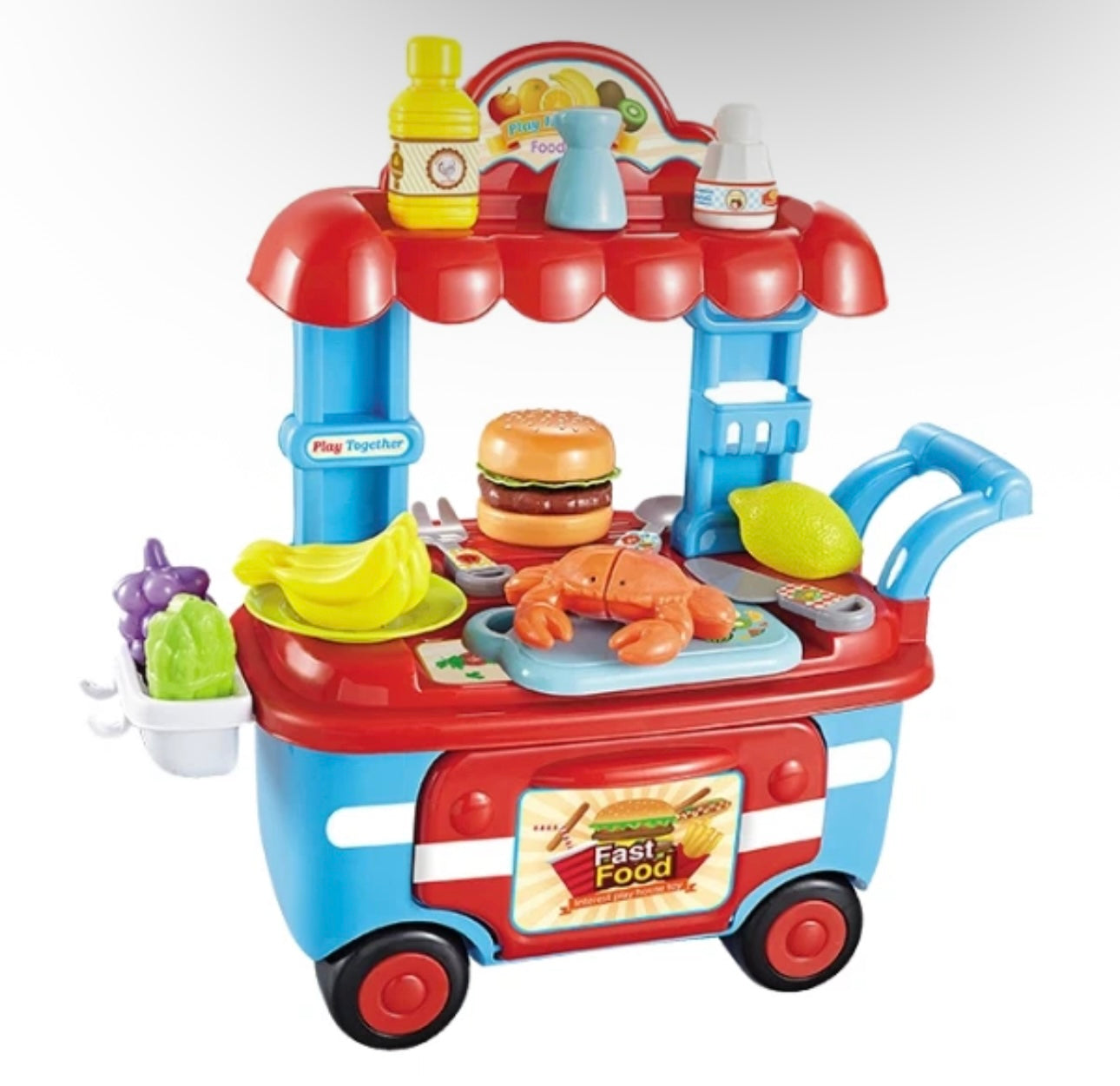 Bring endless fun and creativity to your child’s playtime with this realistic kids’ food cart playset. Designed with vivid colours and lifelike details, this toy encourages hours of imaginative role play!