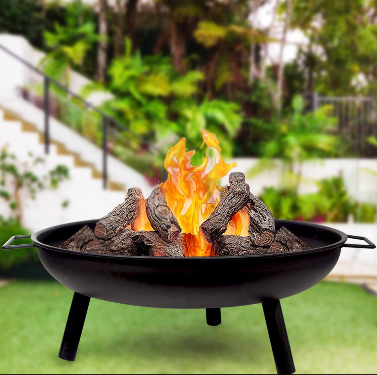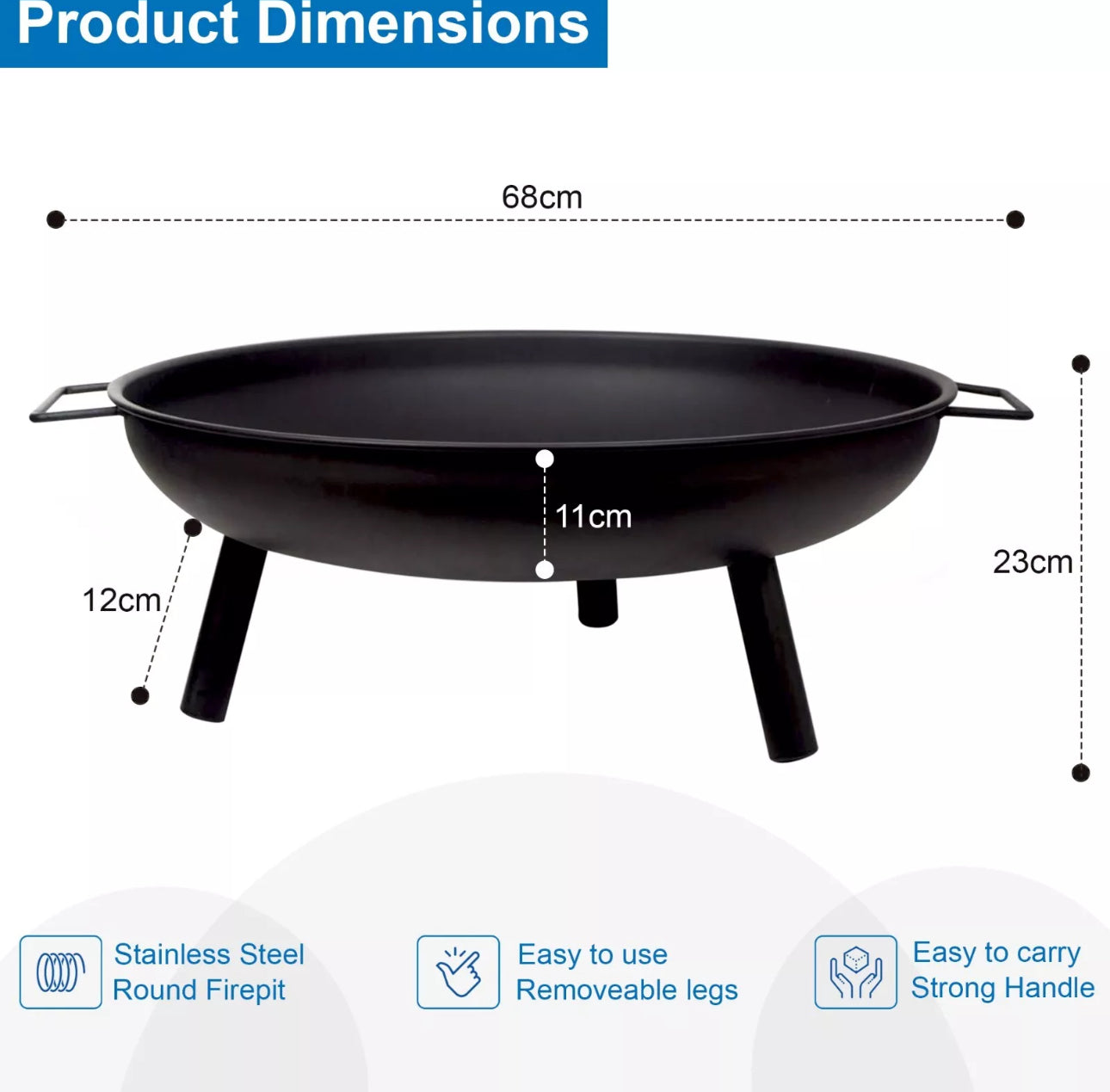 - The fire fit is 58cm , the fireplace is very large to storage enough wood for a large fire. Carrying Handles allows the fire pit to be moved anywhere according to your needs.