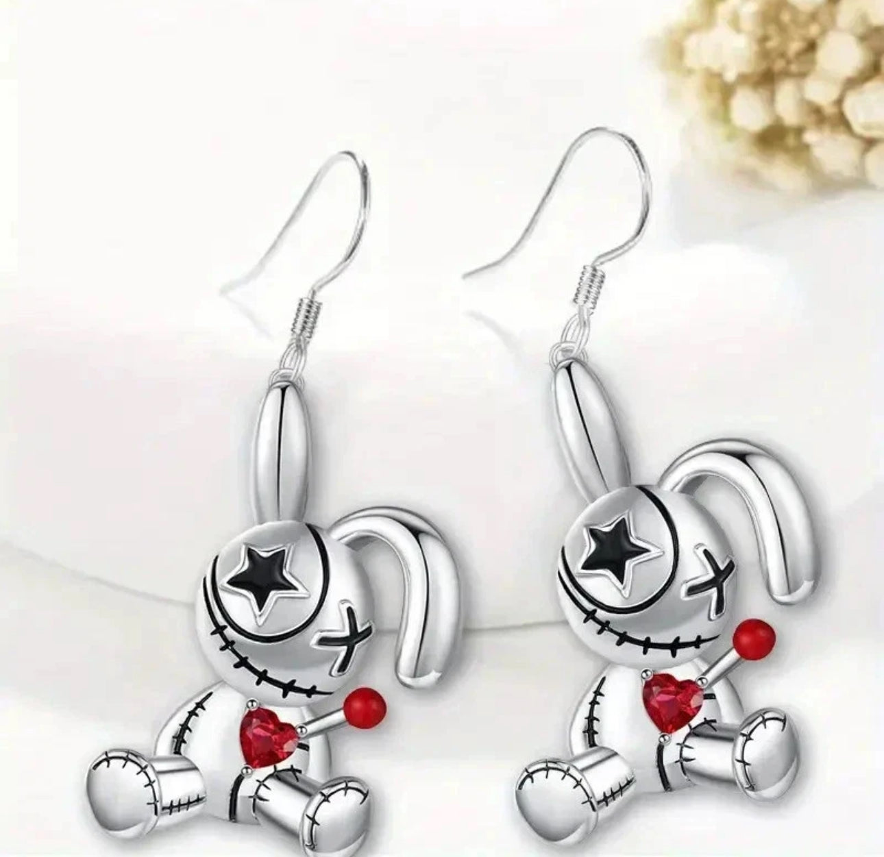 Silver Plated Scary Heart Rabbit Earrings