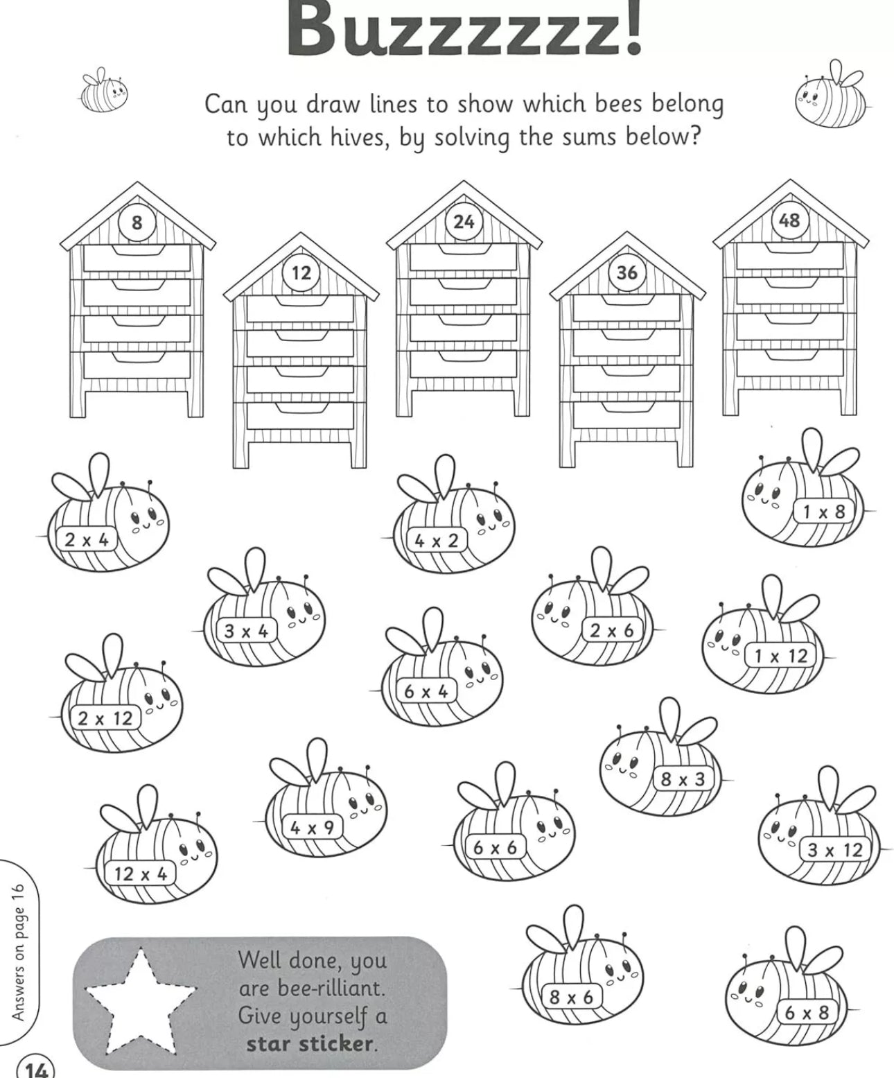 This times tables workbook covers numbers 1 to 12, providing step-by-step help to guide young learners. It includes colour-by-numbers challenges and other fun times table games, making multiplication practice interactive and enjoyable.