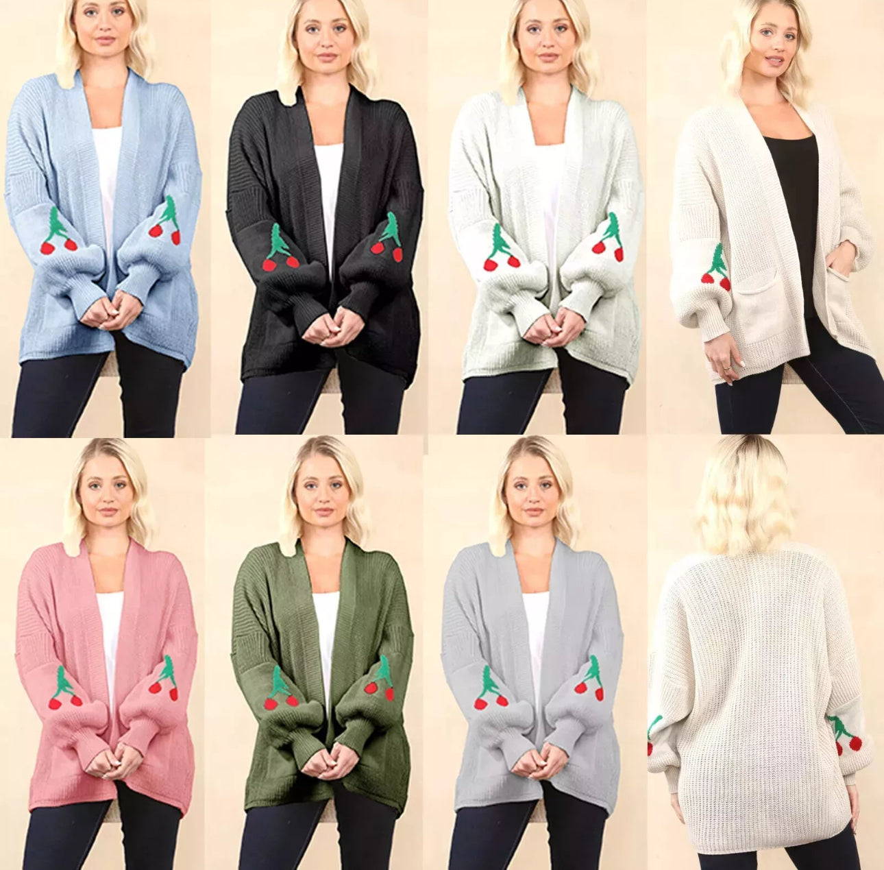 Ladies Chunky Cherry Print Cardigan