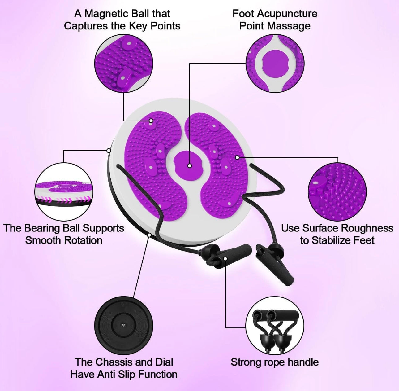 The torsion disc board provides a comprehensive workout from the feet to the waist, involving the whole body in the exercise.